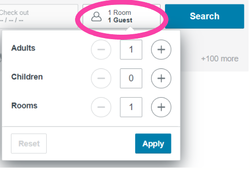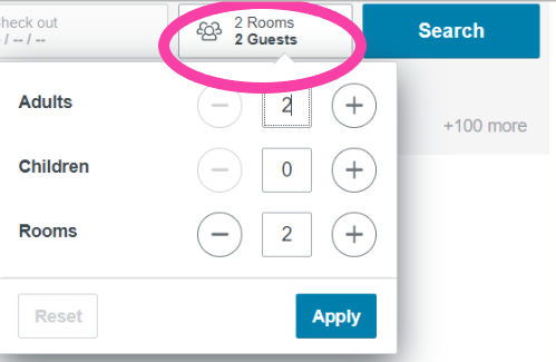 ✔️ In this example, the words following the numbers are in the correct format (1 room, 1 guest – 2 rooms, 2 guests).