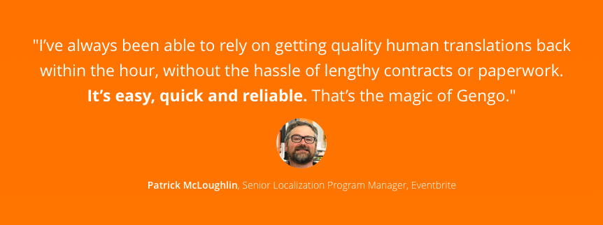 Delightful customer support and product innovation are cornerstones of Eventbrite’s offering, which processed over $1 billion in gross tickets sales in 2013 alone. When Eventbrite began their expansion into Europe, Senior Localization Program Manager Patrick McLoughlin turned to Gengo to help their customer support team (affectionately called WeRock at Eventbrite) in Europe provide the same speedy, warm assistance in customers’ native languages.