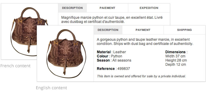 When a seller in France, Vestiaire’s main market, posts an item with a French description, Vestiaire offers a free translation of its product description from French to English. The effect is a product that is more appealing to a global audience which results in sellers having more business opportunities. Because of Gengo’s extremely affordable prices the translation cost is easily justified.