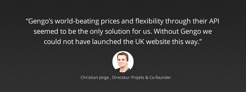 Vestiaire started as a French site in 2009 but we localized the site into English for the UK in February 2012 and we will soon be launching a US site as well. Thousands of items are added every week, and it is critical that each item’s description is translated for every market in a timely manner. Gengo’s world-beating prices and flexibility through their API seemed to be the only solution for us. Without Gengo we could not have launched the UK website this way. It is easy to localize a website UI, but it didn’t make sense to launch in the UK without having the localized content.