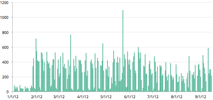Vestiaire is a great example of a company scaling rapidly with translation using the Gengo API. As shown on this graph, the number of translation orders placed has averaged 500 translation jobs per day, and occasionally reaches over 1,000 per day.