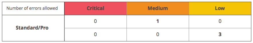 For both Standard and Pro-level tests, we are able to overlook one “medium” error or a certain number of “low” errors. However, we never approve a test containing a “critical” error, or more than one “medium” error.