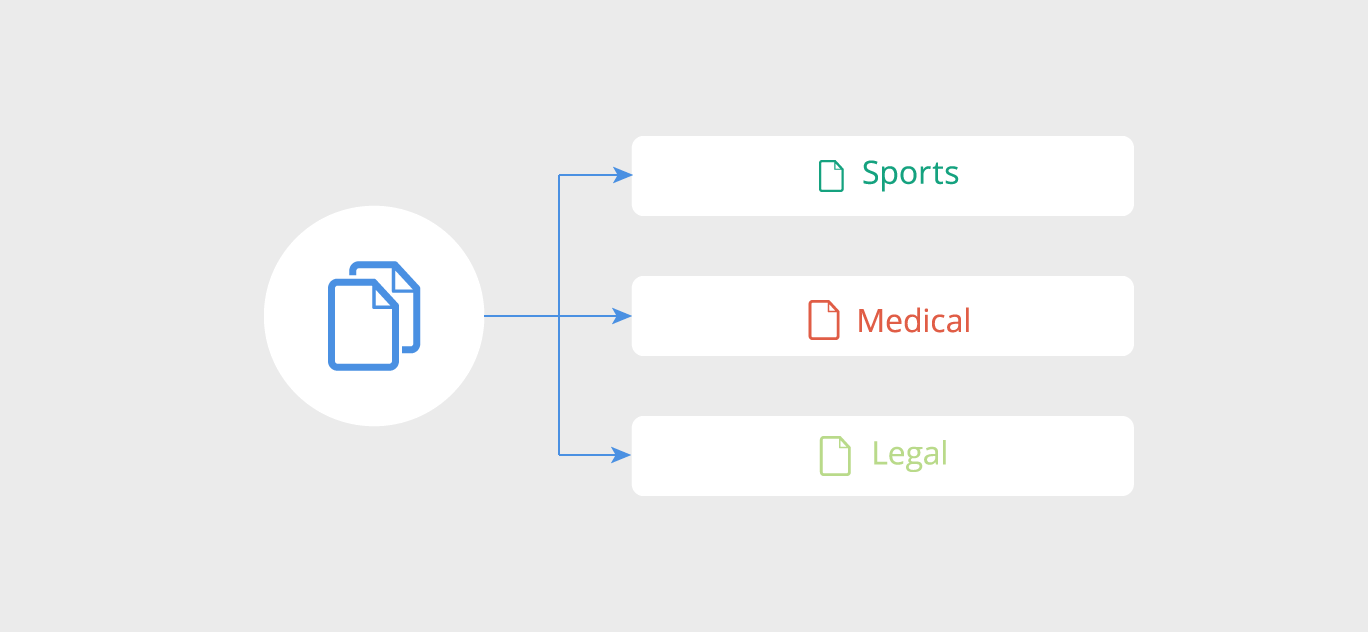テキスト分類には、テキストを読んで法務、ビジネス、金融などのカテゴリーに分類するタスクが含まれます。通常、顧客が、どのくらい詳しく分類すべきかを特定した分類システムを提供します。一つのテキストを複数のカテゴリーに加えることができる場合もありますが、こうすることで、それぞれのテキストが全体にどのように関係しているのかがより明らかになり、アルゴリズムが有益なパターンを見つけやすくなります。