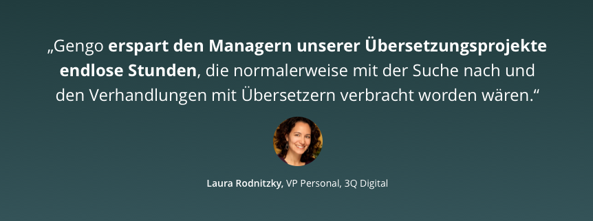 Mit Gengo kann sich 3Q Digital, statt gute und geeignete Übersetzer zu suchen und Projekte jonglieren zu müssen, auf die Entwicklung von Strategien wie der Einführung und Optimierung neuer Kampagnen für Klienten und deren Eroberung der Weltmärkte konzentrieren.