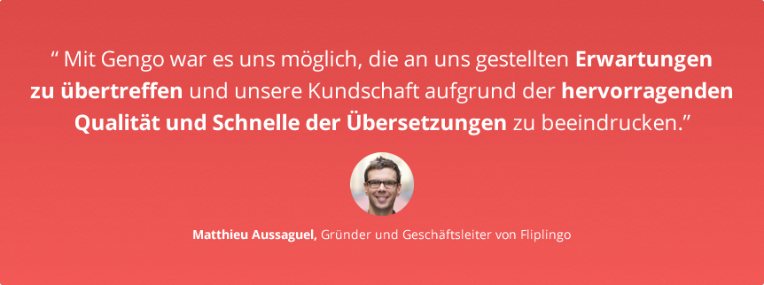 Gengos leicht verwendbare Plattform stellte die perfekte Lösung für Fliplingo dar. Mithilfe großer Kundenbibliotheken und -dokumentationen verlief das Plug-in von Gengos API so einfach wie ein simples Kopieren-und-Einfügen. Zusätzlich dazu stand Gengos engagiertes Integrationsteam den Entwicklern von Fliplingo jederzeit zur Seite, sobald diese sich irgendwelchen Problemen gegenüber sahen.