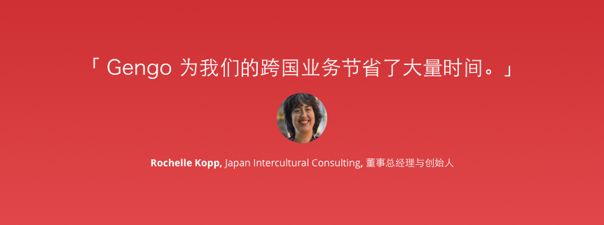 Rochelle 在三年前发现了 Gengo,并开始用它来翻译日常所需的内容。Gengo 符合她对于一项翻译服务的全部期望,她感到非常满意 — 通过 Gengo 提交文档或消息的翻译工作只需几分钟 — 并且质量极佳。Gengo 的众包模式可切分并完成翻译工作,为她的团队提供帮助的同时也不会影响团队的工作效率。